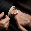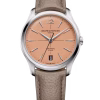 The Clifton 10778, limited to 350 pieces, boasts a round case in satin-finished stainless-steel, joining the collection in a 39mm format. Its case features a stainless-steel crown and a sapphire open case back. The opaline salmon dial, edged by a black minute track and crosshair, highlights the Arabic numeral at 12 o’clock, riveted rhodium-plated trapezoid-shaped indexes, and alpha-shaped hands. It is equipped with a self-winding Baumatic movement (BM13-1975A) with a 5-day power reserve and water resistance to 5 ATM. The interchangeable black calfskin strap and the additional beige calfskin strap feature a reliable system for tool-free changes.